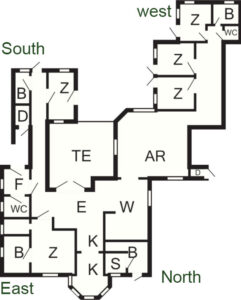 Huset vender således at solen rammer terrassen i gården om aftenen og morgensolen rammer terrassen mod nord.